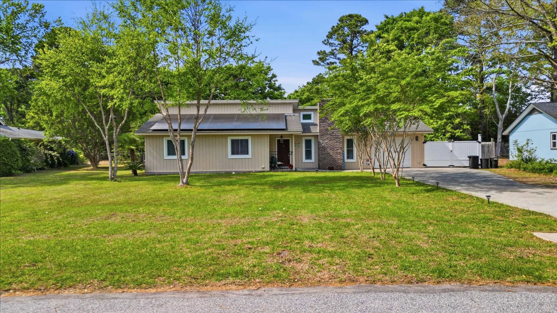Welcome to 18 Sandy Pine Drive in the desirable Surfside Beach area, just minutes from the ocean! This charming home offers the perfect blend of coastal living and everyday comfort, ideal as a primary residence, vacation getaway, or investment opportunity. Step inside to a bright, inviting interior filled with natural light. The living area flows seamlessly into the renovated kitchen and dining room combo (2023), perfect for entertaining or relaxing. New flooring installed (2023) adds a fresh, modern touch throughout. Enjoy the spacious Carolina Room, ideal for year-round use. Seller-owned solar panels are fully paid off, helping reduce monthly utility costs. The home features well-sized bedrooms and ample storage. Relax in the private yard, just a short drive or golf cart ride to the beach, dining, shopping, and entertainment.